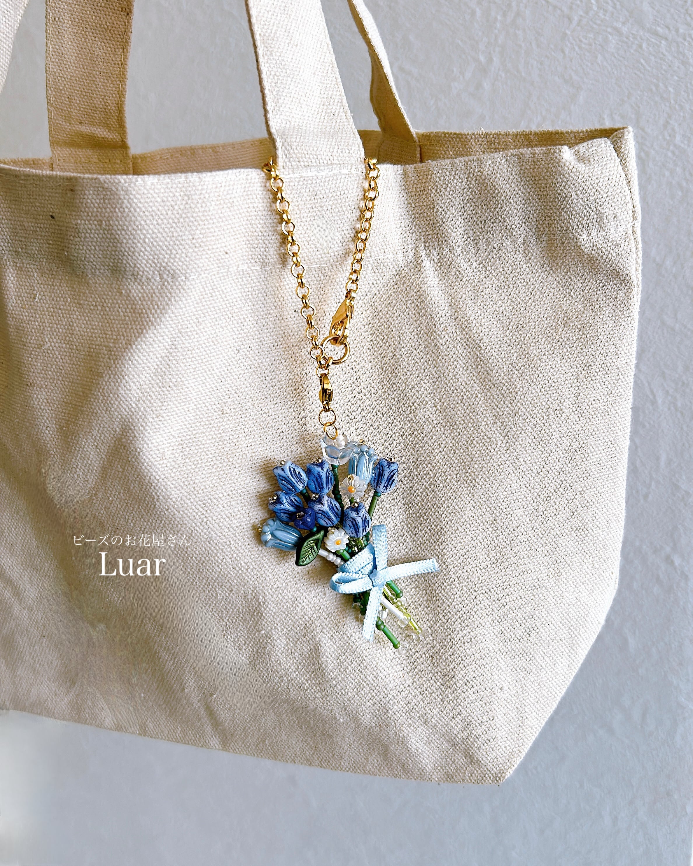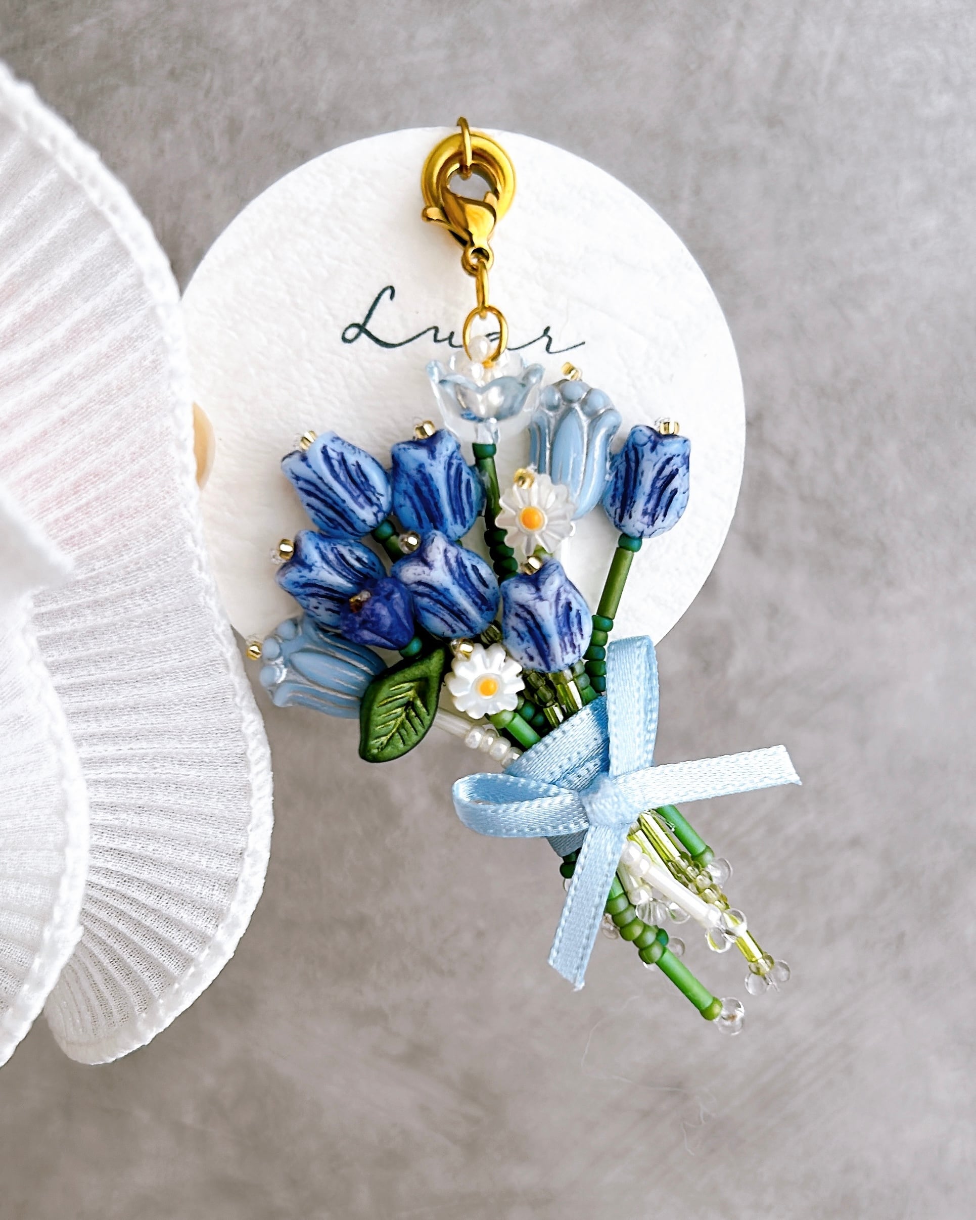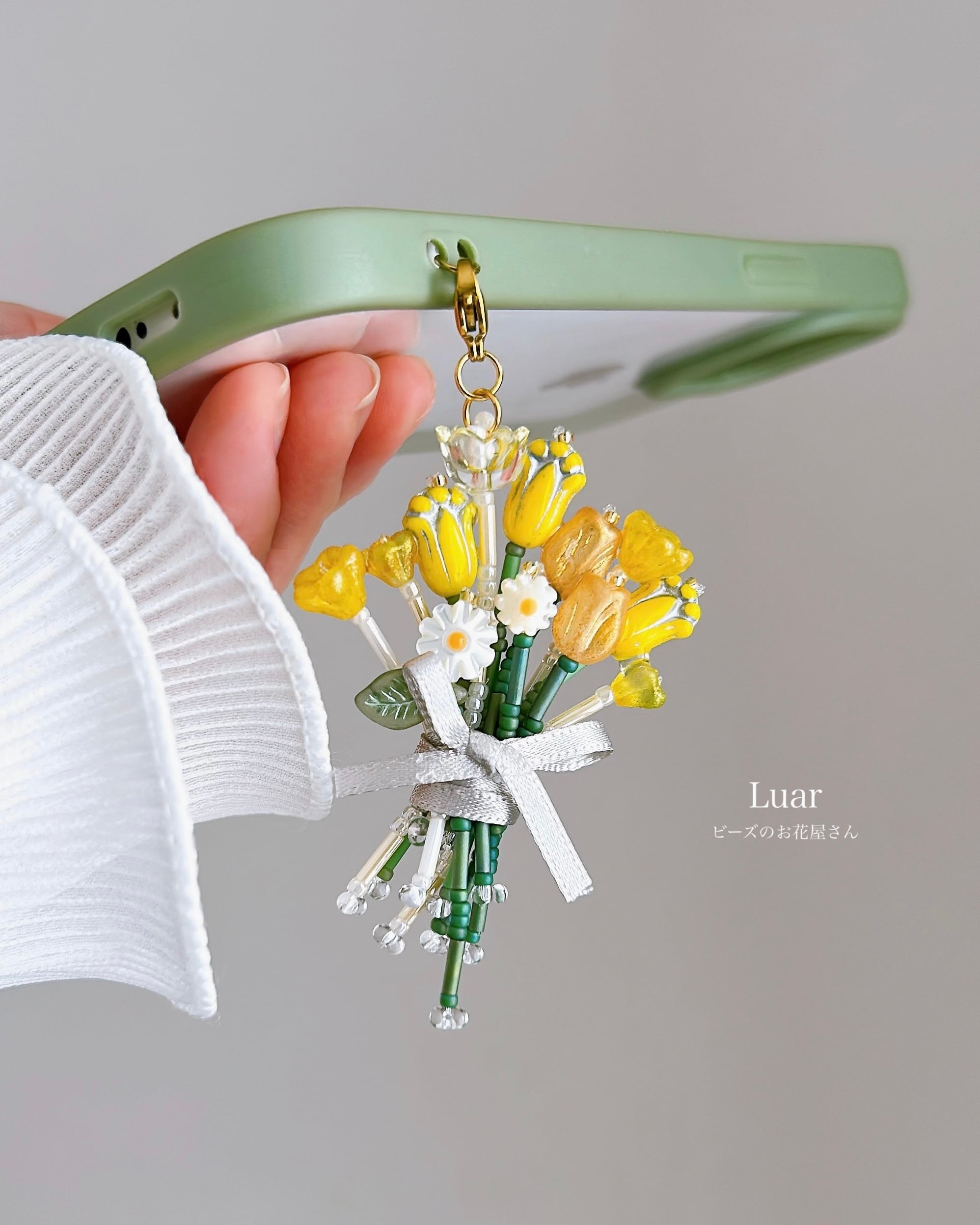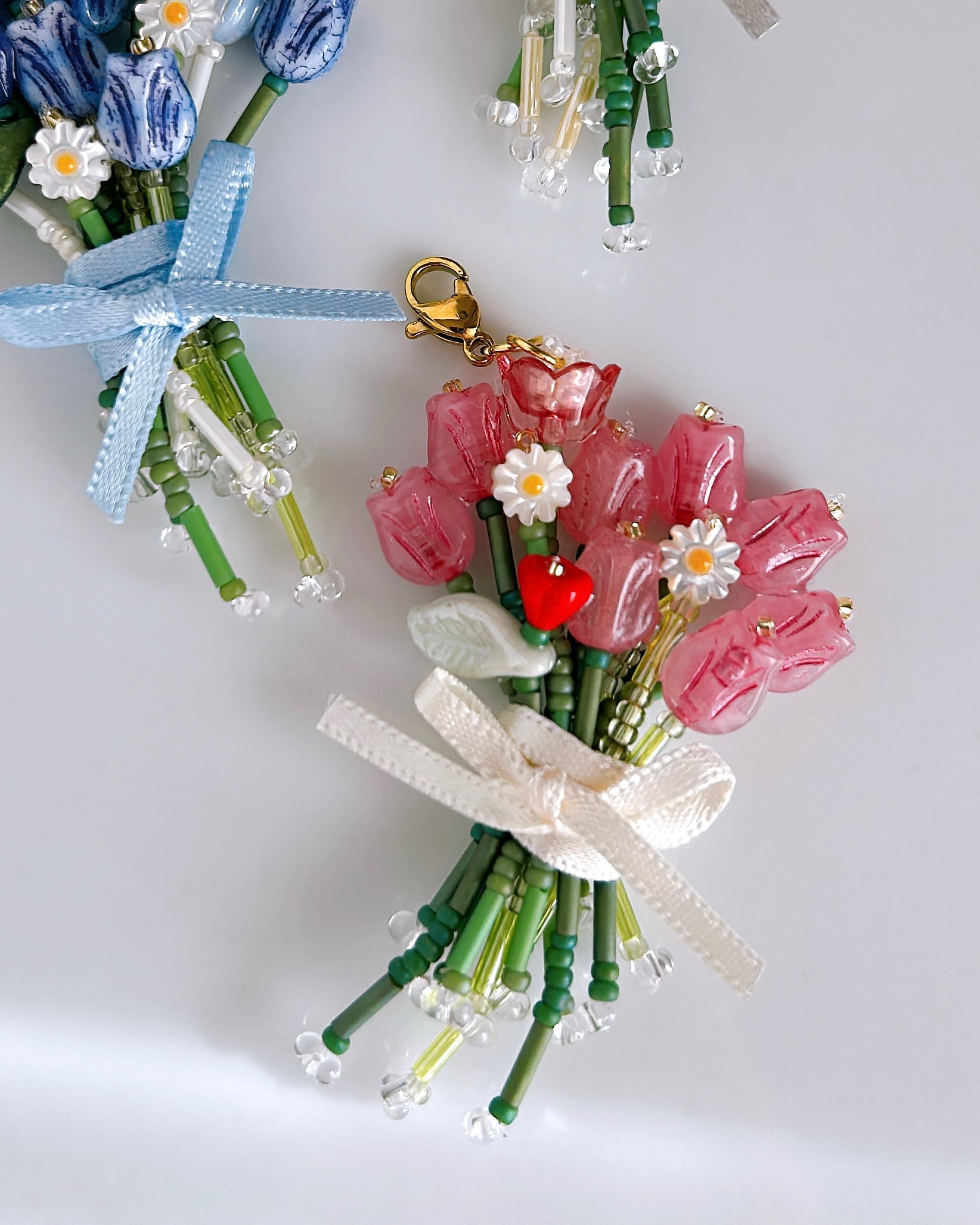 小さなチューリップをぎゅっと束ねた、ビーズの花束チャーム。