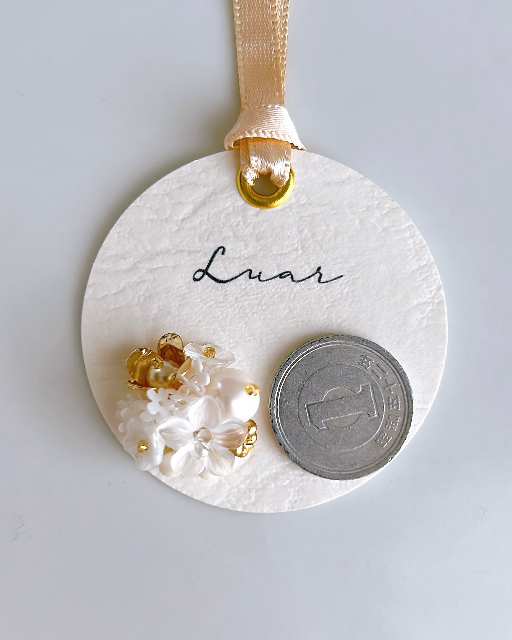 重さはイヤリングで3.8g、ピアスで3.0gです。(一円玉1枚が1g)