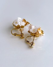 淡水パールが織りなす、優美で繊細なデザインの耳飾りです。