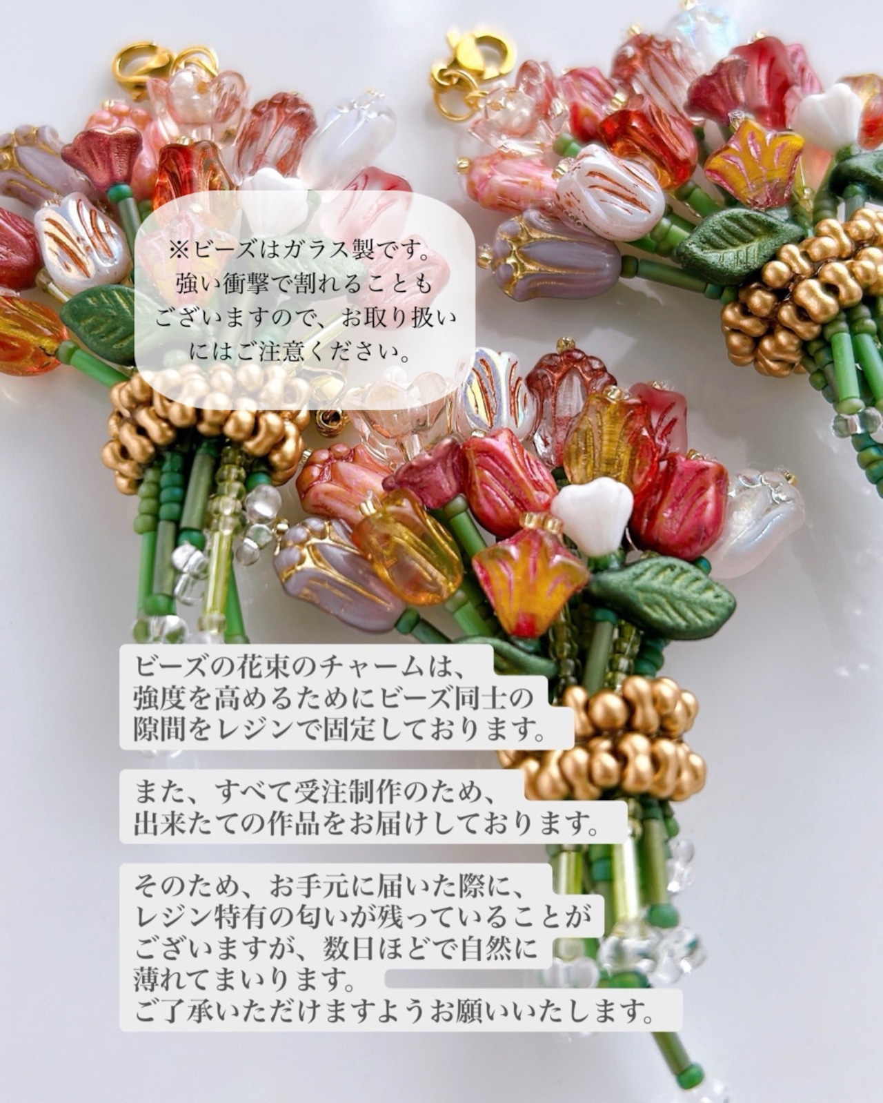 ○ガラスのビーズを使っていますので、お取り扱いにはご注意ください。