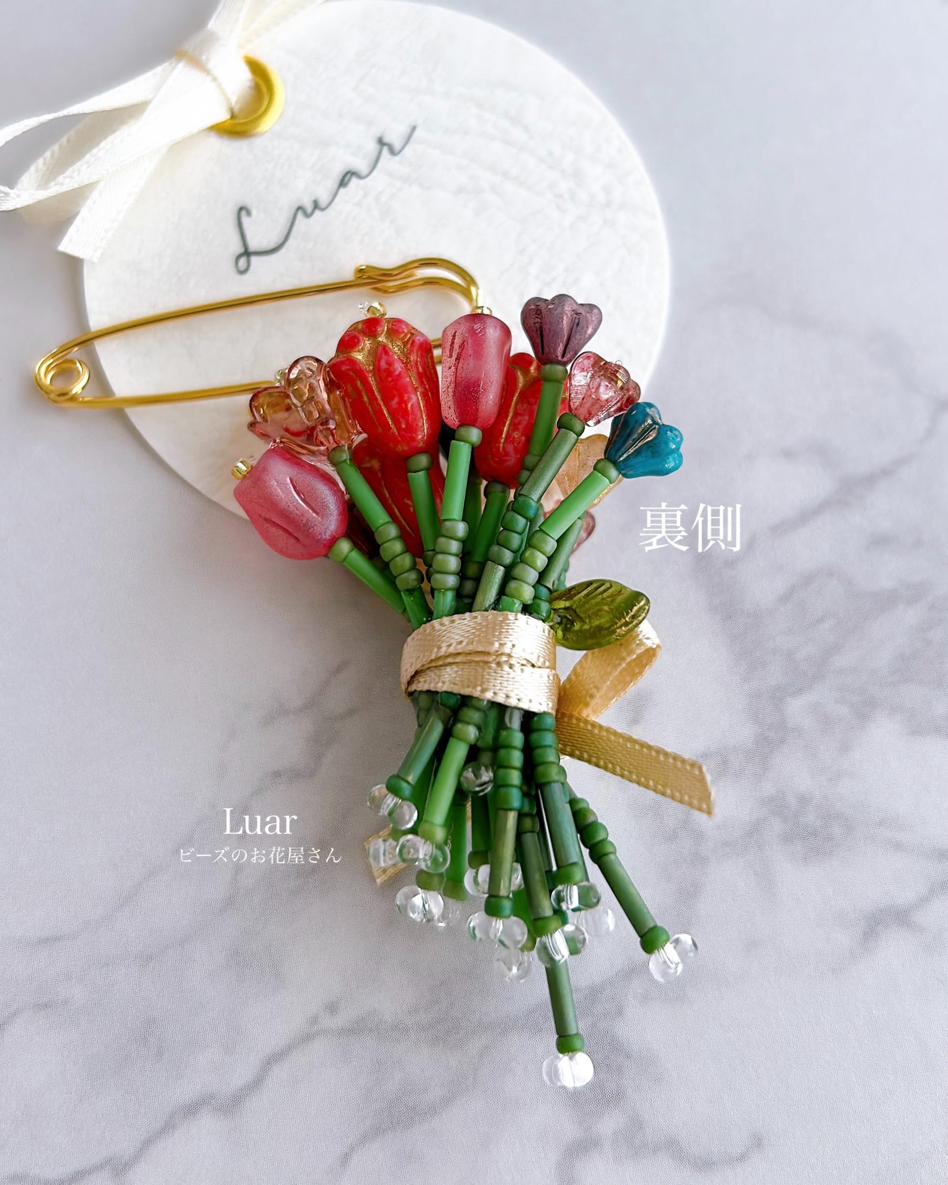 色とりどりのビーズを束ねた、小さな花束。