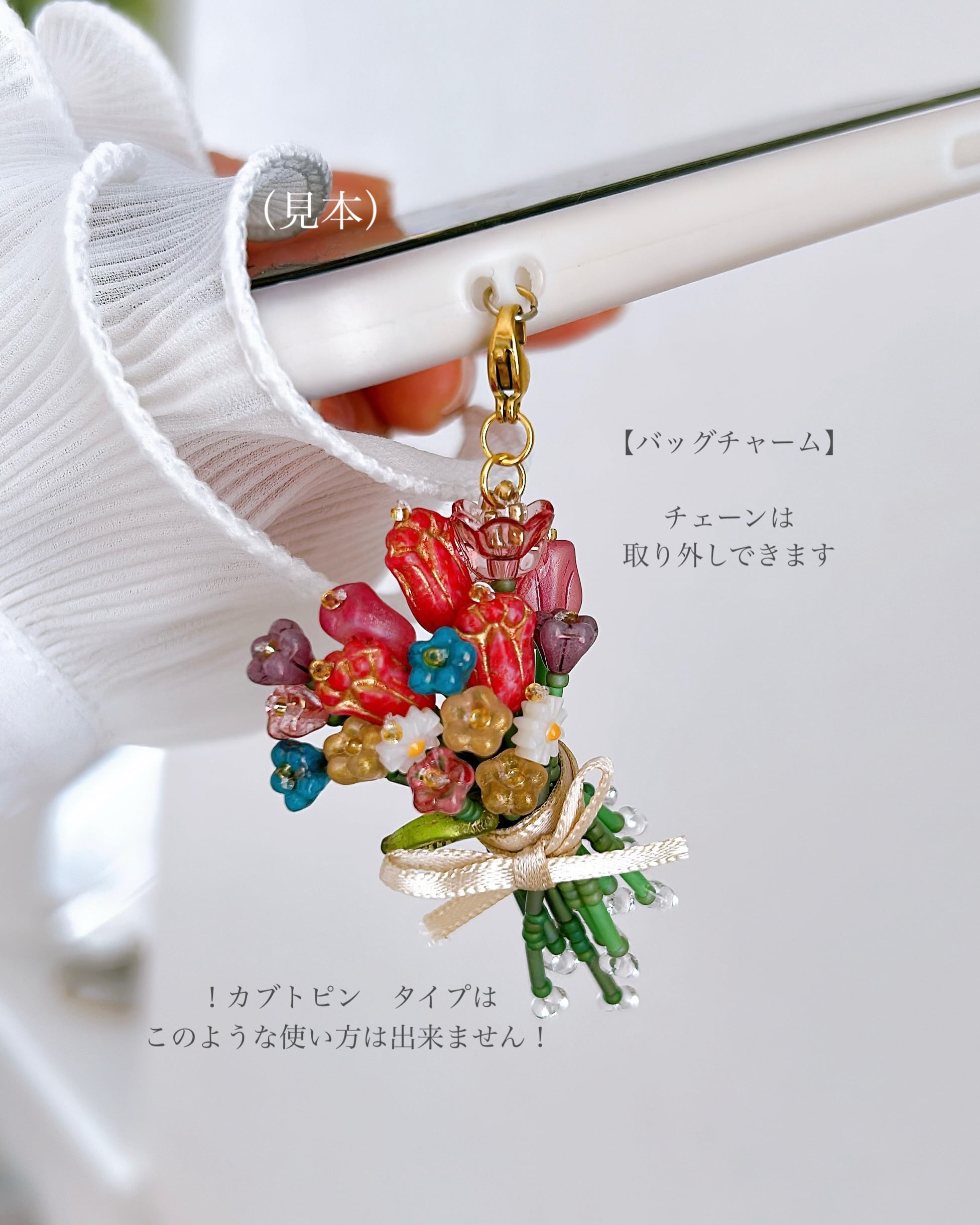 ○ガラスのビーズを使っていますので、お取り扱いにはご注意ください。