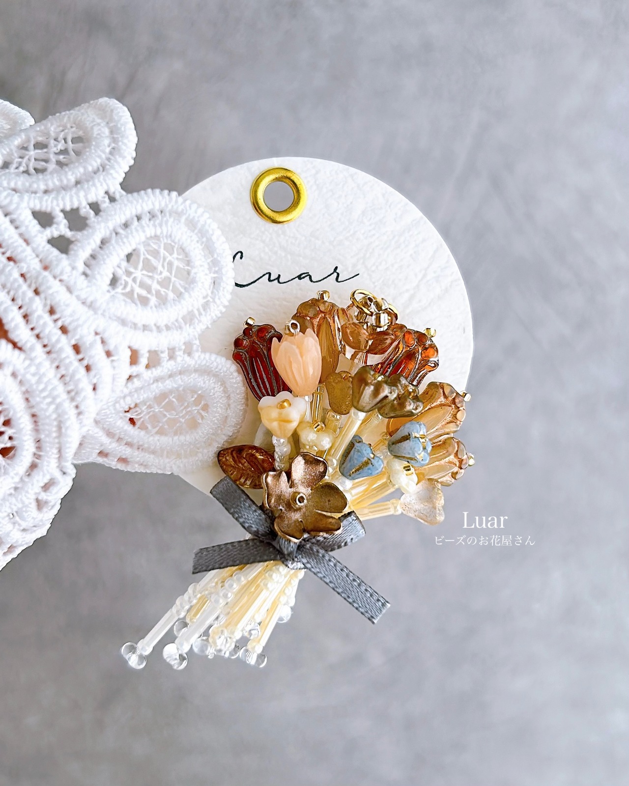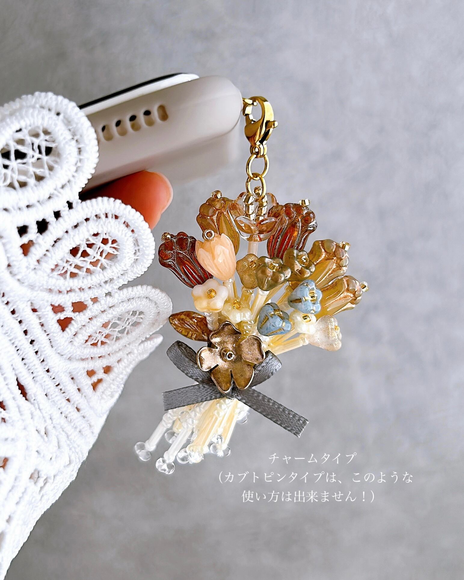 ○ガラスのビーズを使っていますので、お取り扱いにはご注意ください。