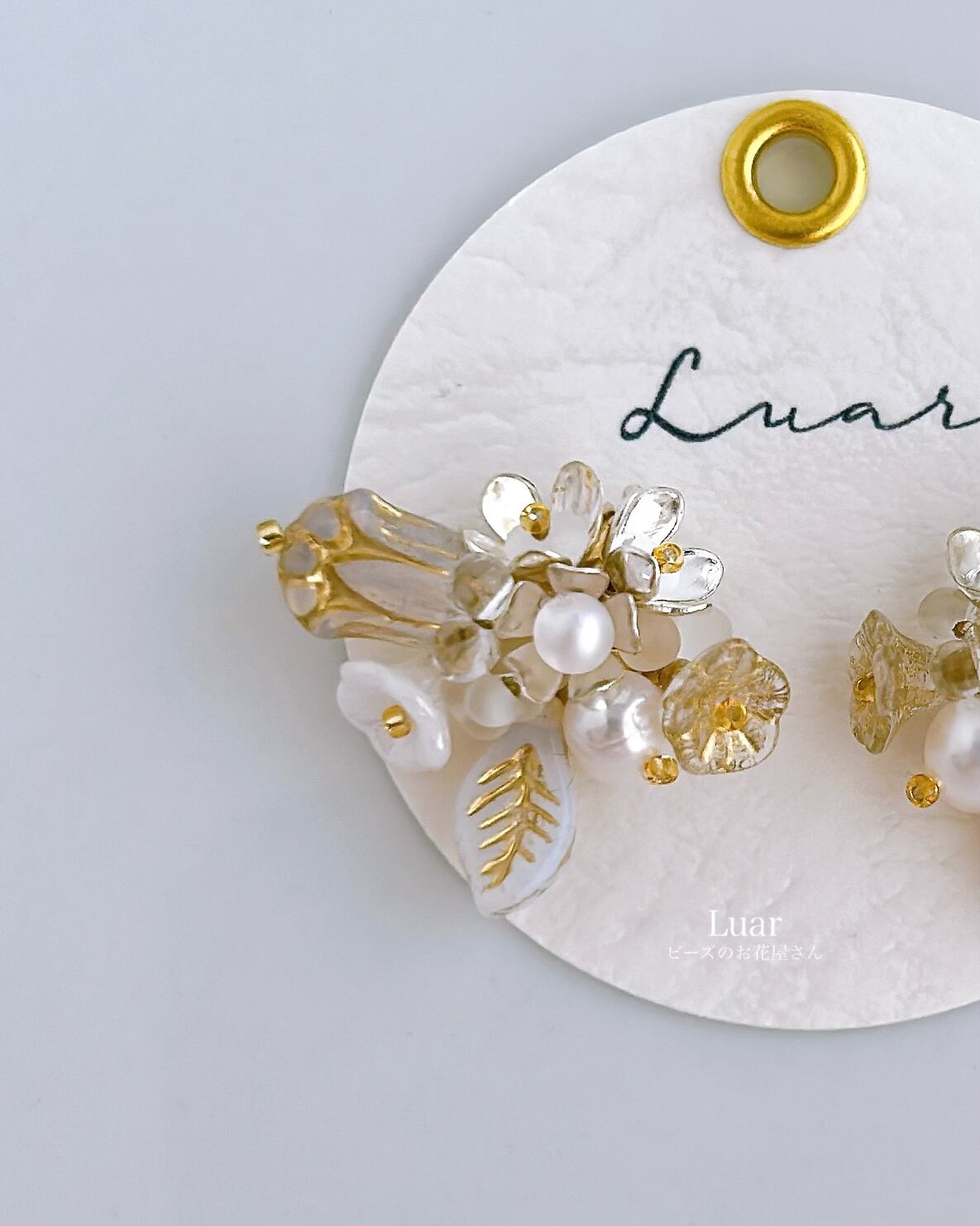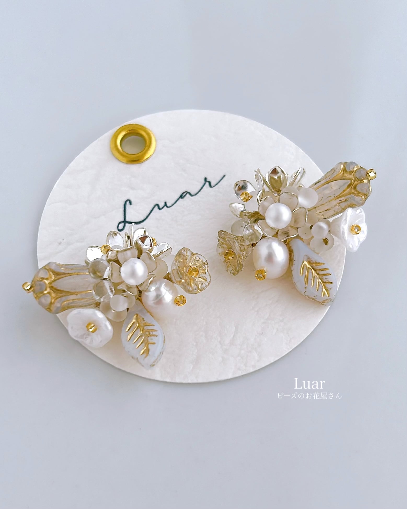 日常使いはもちろん、特別な日にも上品にお使いいただけます。やさしい白とゴールドの組み合わせは、ナチュラルなお洋服や、クラシカルな装いにもよくなじみます。