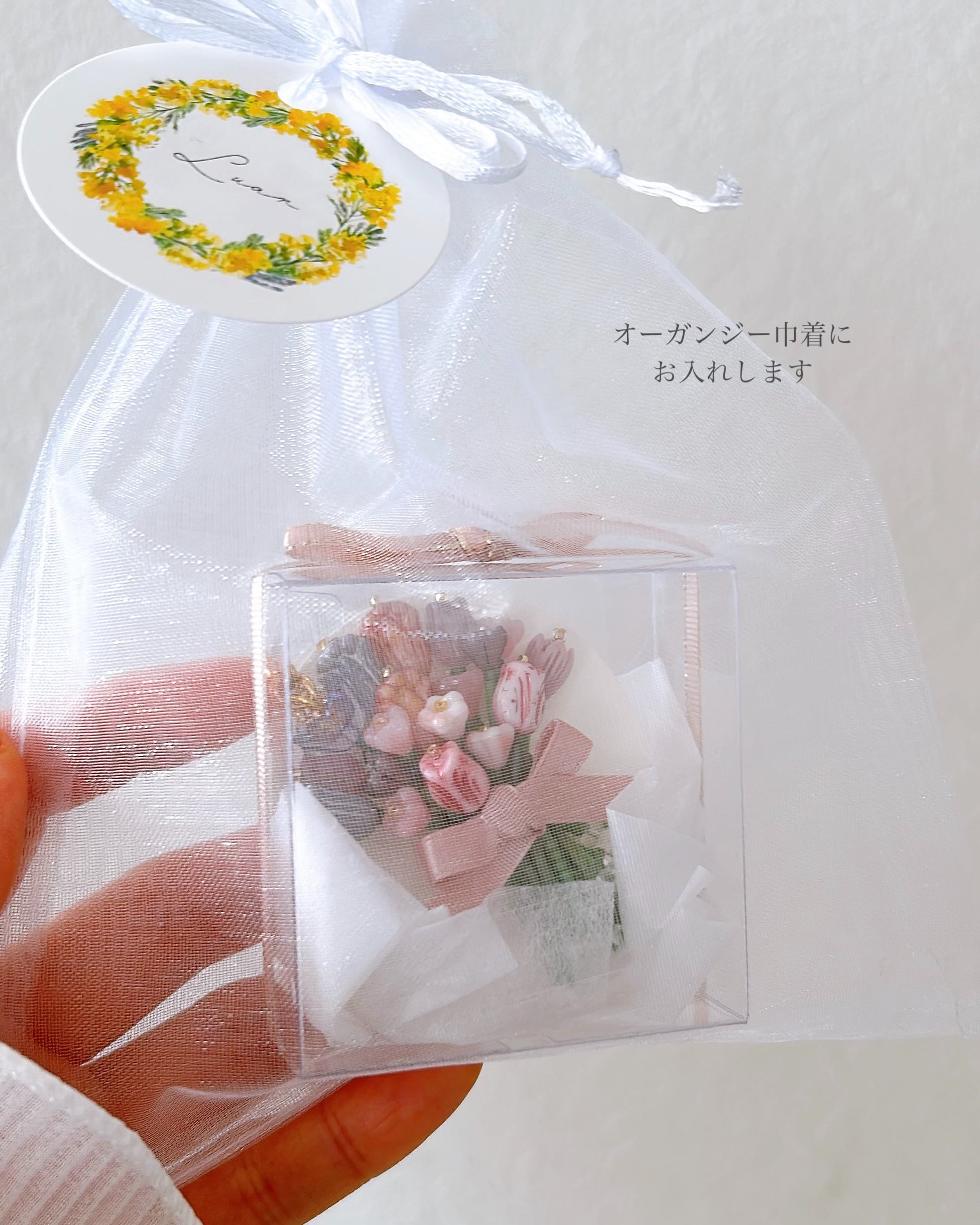 手のひらに収まる小さなブーケは、見るたびに心をほどいてくれるようなやさしさを届けます。
